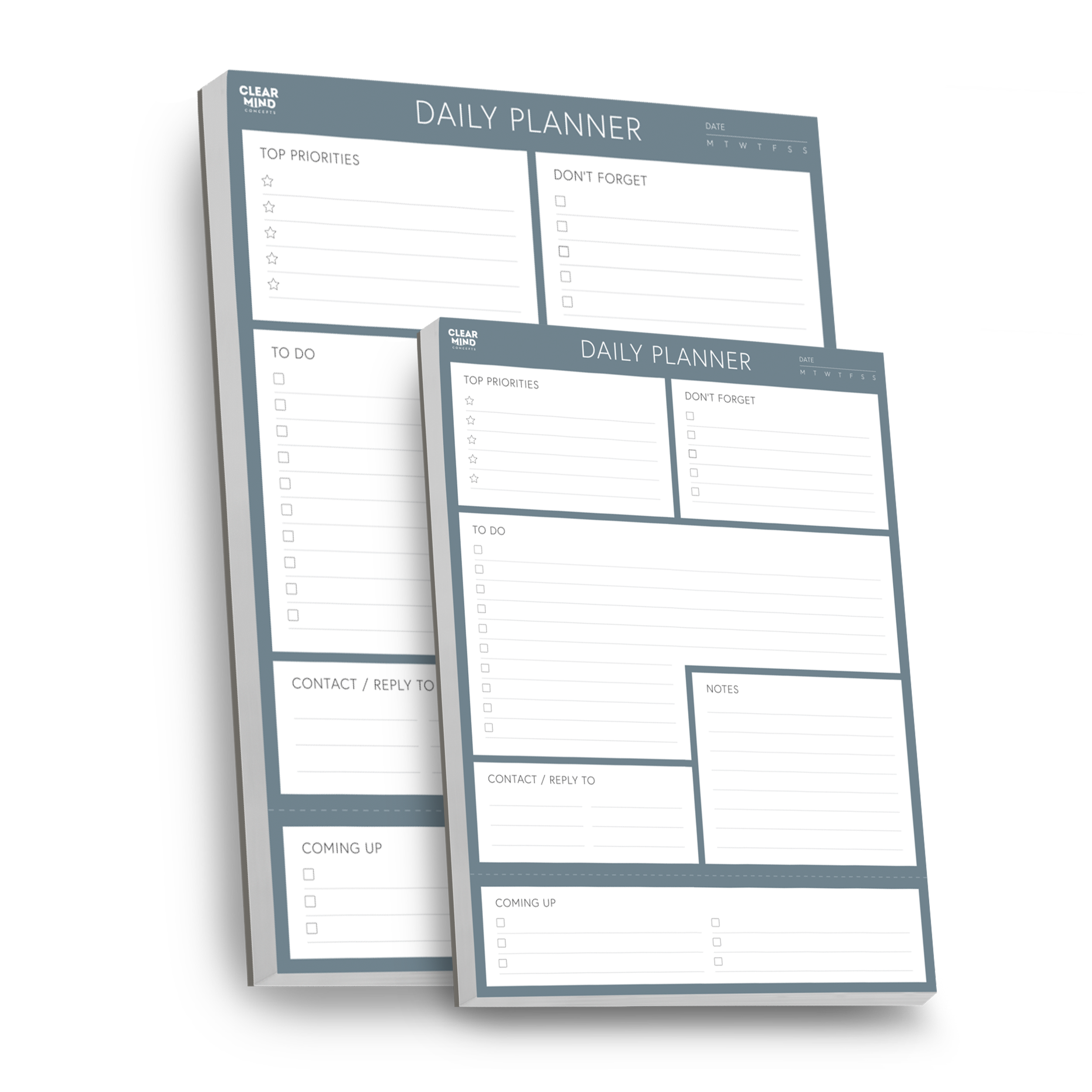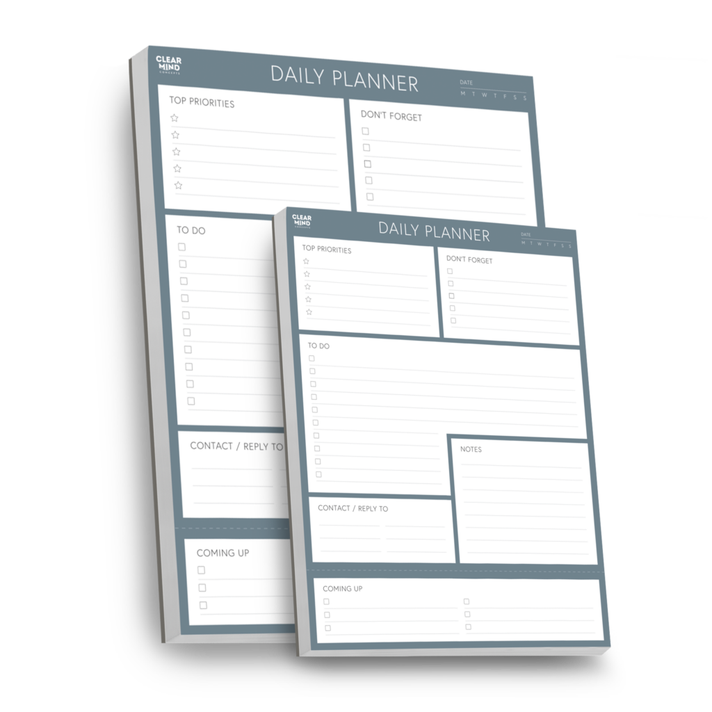 Use the spacious A4 pad for structured daily planning at home or in the office. Write out your top priorities, schedule tasks, track progress and stay fully focused on what matters most. The compact A5 pad slips easily into your bag or sits neatly beside your keyboard, perfect for quick notes, reminders and fast daily check ins.
