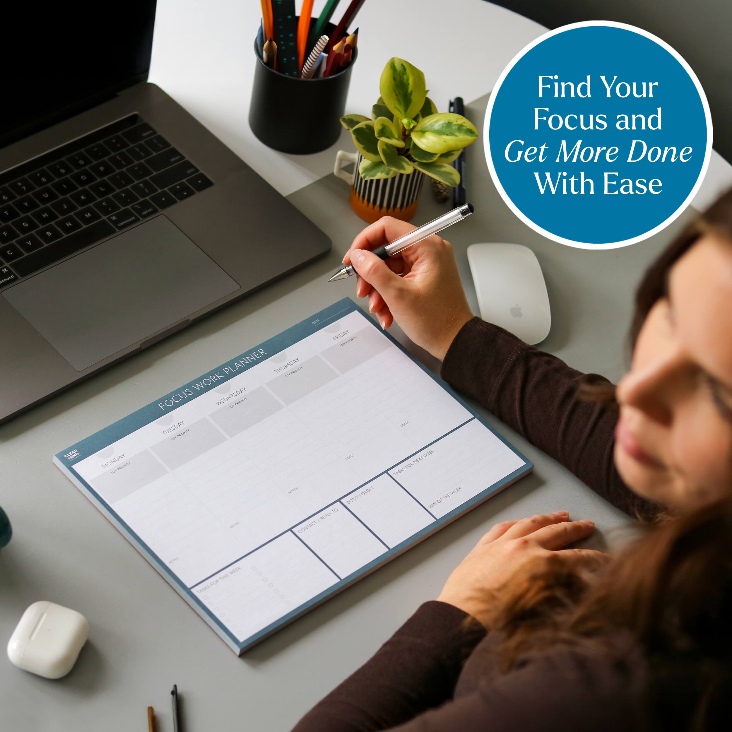 Many people find writing by hand boosts focus and memory. A paper planner gives you a clear visual layout, reduces screen fatigue, and helps you stay present with your goals.