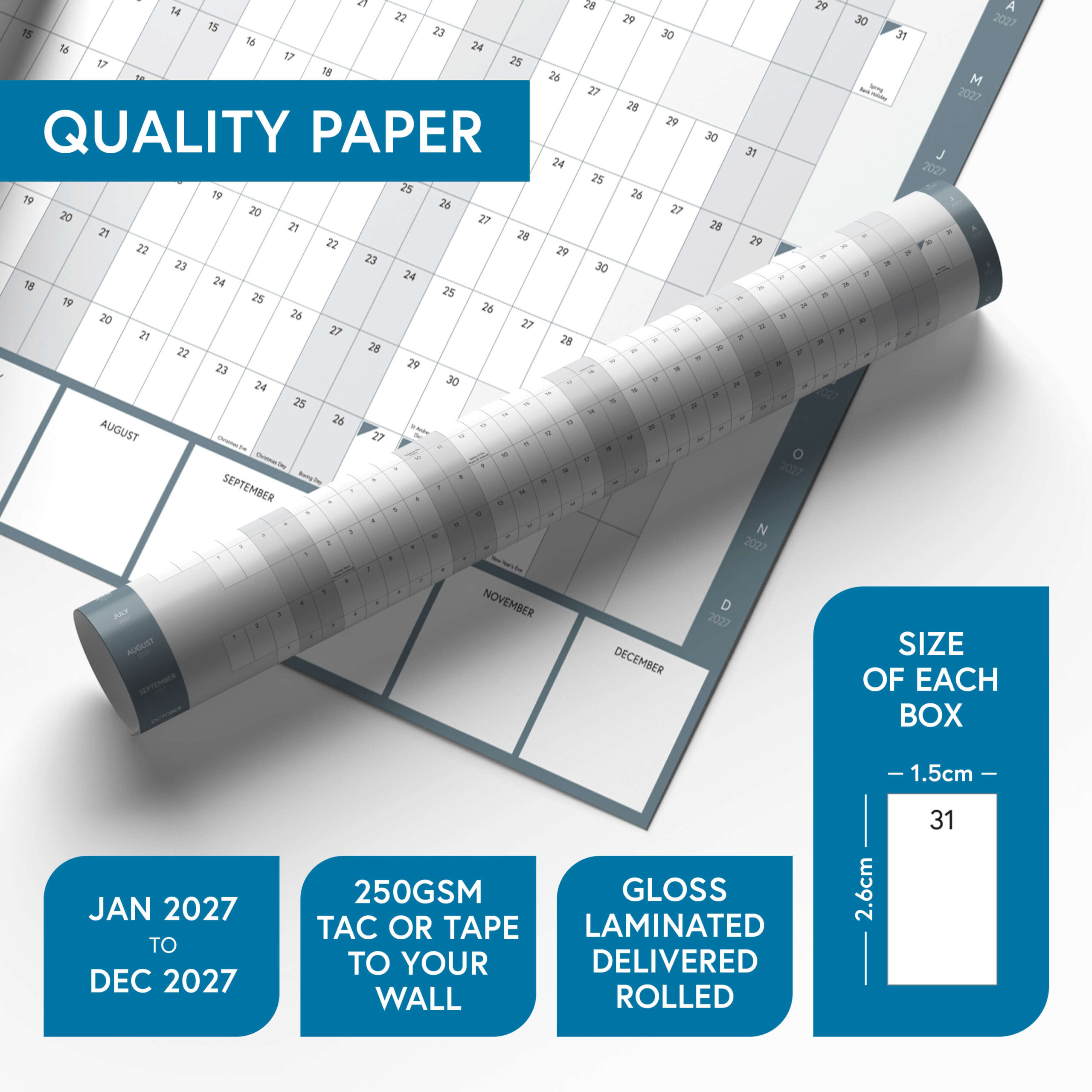 This 2027 A2 Laminated Year Wall Planner is your go-to solution for clear, clutter-free annual planning. Printed on premium 250gsm soft silk gloss laminated paper, it’s fully compatible with dry wipe pens – allowing you to update plans effortlessly.